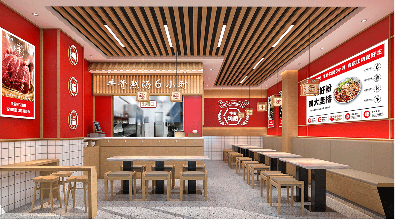 花溪牛肉粉是一种广受欢迎的美食,其店铺装修应该与其特色相匹配。在设计装修方案时,考虑到花溪牛肉粉是一种中式快餐,我们可以采用一些传统元素,并结合现代感,使得整个店铺既有传统的氛围,又不失现代感。